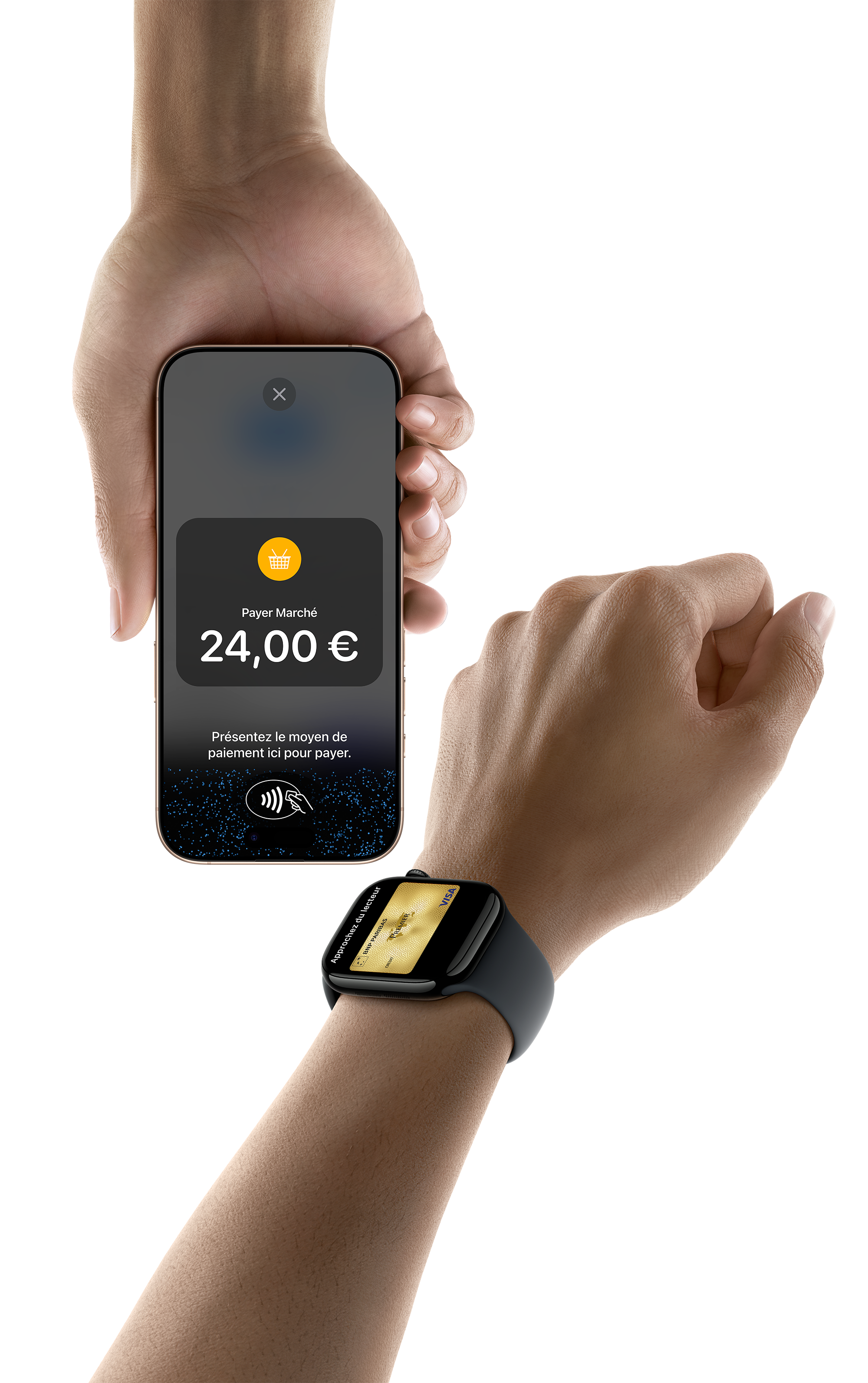 3. Celle ci doit placer sa carte ou son téléphone horizontalement sur la partie supérieure de votre iPhone, au dessus du symbole sans contact.